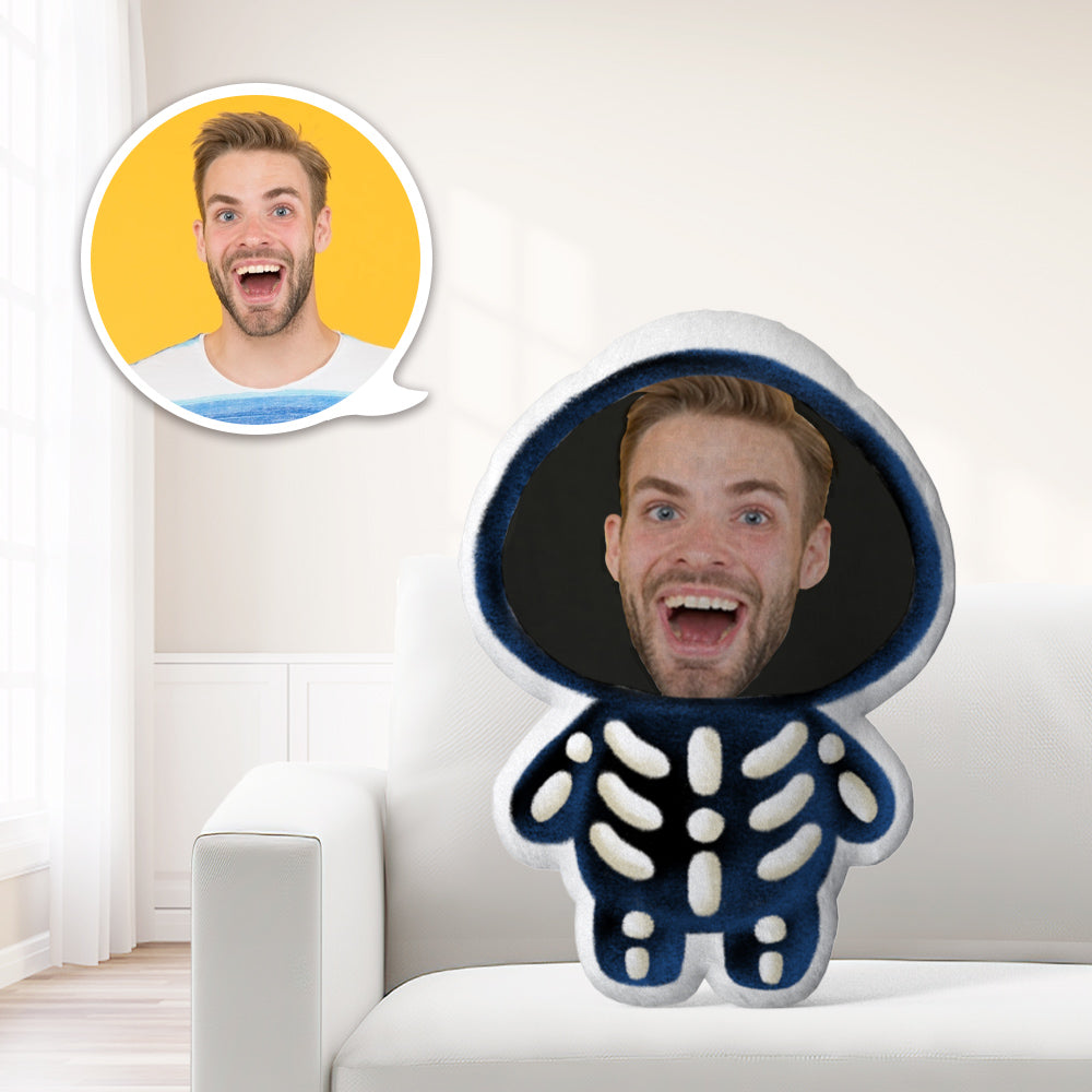 Photo Pillow Face Pillow Personalized Pillow Custom Pillow Minime Pillow Doll Skeleton Holding A Book Halloween