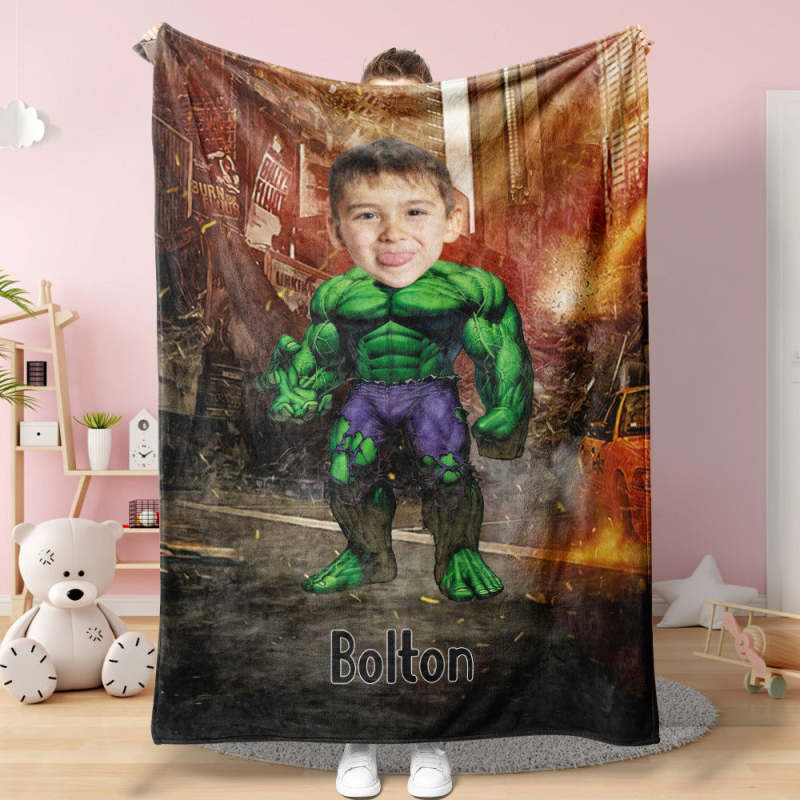 Custom Face Blanket Personalized Photo and Text Super Hulk Blanket Minime Blanket Best Gift For Him