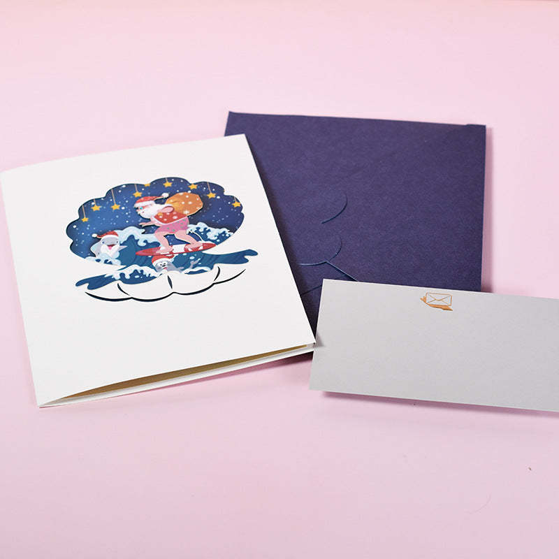 Surfing Santa 3D Pop-Up Card Greeting Card